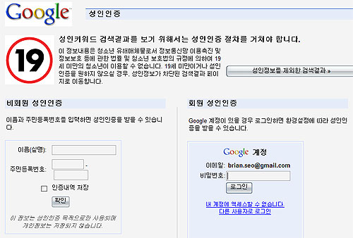 ÇöÀç ±¸±Û ÄÚ¸®¾Æ °Ë»ö â¿¡ ¼ºÀÎ¿ë ¡®±ÝÄ¢ Ű¿öµå¡¯°¡ ÀÔ·ÂµÇ¸é ¼¼ÀÌÇÁ¼Ä¡ ±â¼ú·Î ÀÚü ÇÊÅ͸µ ÇÑ °Ë»ö°á°ú°¡ Ãâ·ÂµÈ´Ù. ±¸±ÛÀº °øÁö»çÇ׿¡¼ ¡°Á¤º¸Åë½Å¸ÁÀÌ¿ëÃËÁø ¹× Á¤º¸º¸È£µî¿¡ °üÇÑ ¹ý·ü ¹× û¼Ò³âº¸È£¹ýÀÇ ±ÔÁ¤¿¡ ÀÇÇØ 19¼¼ ¹Ì¸¸ÀÇ Ã»¼Ò³â¿¡°Ô À¯ÇØÇÑ °á°ú´Â Á¦¿ÜµÇ¾ú´Ù¡±¶ó°í ¼³¸íÇÑ µÚ, Àüü °Ë»ö °á°ú¸¦ º¸±æ ¿øÇÑ´Ù¸é ¡®¼ºÀÎÀÎÁõ¡¯À» ¹Þµµ·Ï ¾È³»Çϰí ÀÖ´Ù. »ç¿ëÀÚ°¡ 19¼¼ ¼ºÀÎ ÀÎÁõ°úÁ¤À» °ÅÄ¡Áö ¾ÊÀ¸¸é ¼¼ÀÌÇÁ¼Ä¡·Î ÇÊÅ͸µ µÈ °á°ú¸¦ º¼ ¼ö ÀÖ°Ô µÈ´Ù.