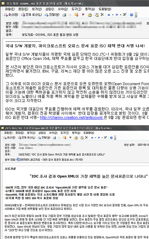 Áö³´Þ 30ÀÏ ¿ÀÇ µµÅ¥¸ÕÆ® Æ÷¸Ë(Open Document Format)À» ÁöÁöÇÏ´Â ±¹³» ÀϺΠ°³¹ßÀÚ ¼ö¹é¿© ¸íÀÌ ¡°´õ ÀÌ»ó MS¿¡ Á¾¼ÓµÇ¾î¼´Â ¾È µÈ´Ù¡±¸ç °ø°³ÀûÀ¸·Î ¼¸í ¿îµ¿(http://channy.creation.net/antiooxml)À» ¹úÀ̱⠽ÃÀÛÇß´Ù.
