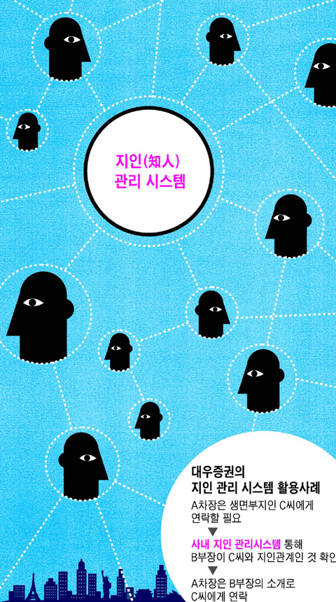 Áö³ 7¿ù Àθưü¸® ½Ã½ºÅÛÀ» µµÀÔÇÑ ´ë¿ìÁõ±Ç ÇöÁ¤¼ö »ó¹«´Â ¡°ÀÓÁ÷¿øµéÀÌ °³ÀÎÀûÀ¸·Î °ü¸®ÇÏ´Ù°¡ Åð»çÇÏ¸é »ç¶óÁö´Â ÀθÆÀ» ȸ»ç Â÷¿ø¿¡¼ Àû±ØÀûÀ¸·Î °ü¸®Çϰí, ´õ ³ª¾Æ°¡ ±â¾÷ÀÚ»êÀ¸·Î Ȱ¿ëÇÏÀÚ´Â °Ô ÃëÁö¡±¶ó°í ¼³¸íÇß´Ù. ±â¾÷ °æÀï·Â¿¡¼ ÀÓÁ÷¿øÀÇ ¡®³ëÇÏ¿ì(Know how)¡¯¸¸Å Áß¿äÇÑ °ÍÀÌ ¡®³ëÈÄ(know who¡¤ÇÊ¿äÇÑ »ç¶÷ÀÌ ¾îµð¿¡ ÀÖ´ÂÁö ã´Â ´É·Â)¡¯¶ó´Â °ÍÀÌ´Ù.