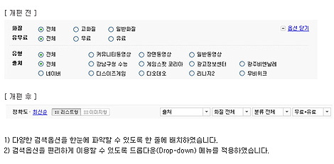 ±×´Â ¡°°Ë»ö⿵¿ª, °Ë»öºÐ·ù¿µ¿ª, °Ë»ö°á°ú¿µ¿ªÀÇ È®½ÇÇÑ ºÐ¸®°¡ ÇÊ¿äÇß´Ù¡±¸ç ¡°´ëºÎºÐÀÇ »ç¿ëÀÚµéÀÌ ¾ÆÁ÷µµ ÅëÇÕ°Ë»ö Àüü ȸéÀ» ¸ðµÎ ÈÈ´Â ÇüŸ¦ ¶ì°í ÀÖÁö¸¸ °Ë»ö ºÐ·ù Åǰú °¢Á¾ Á¤·Äº¸±â ¼±Åø޴º µîÀ» Áö±Ý º¸´Ù ´õ Àû±Ø »ç¿ëÇÑ´Ù¸é ÀÚ½ÅÀÌ ¿øÇÏ´Â °á°ú °ªÀ» Á» ´õ ºü¸£°í ½±°Ô ãÀ» ¼ö ÀÖÀ» °Í¡±À̶ó°í ÁöÀûÇß´Ù. ù ÆäÀÌÁö ½ÂºÎ À§ÁÖÀÎ ÅëÇÕ °Ë»öÀÇ »ç¿ë ½À°üÀ» °Ë»ö ÅÇÀ̳ª °Ë»ö¿É¼Ç Ȱ¿ë ÂÊÀ¸·Î ÀÚ¿¬½º·´°Ô ¿Å°Ü°¡µµ·Ï ÇÑ Àü·«À» °£Á¢ÀûÀ¸·Î ¿³º¼ ¼ö ÀÖ´Â ºÎºÐÀÌ´Ù.