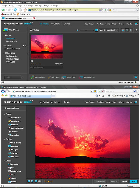 ¾îµµºñ´Â 27ÀÏ ÇØ¿Ü ¾ð·Ð¿¡ ¹èÆ÷ÇÑ º¸µµÀڷḦ ÅëÇØ ¡°¹«·á À¥ ¹öÀü Æ÷Åä¼¥ÀÎ ¡®Æ÷Åä¼¥ ÀͽºÇÁ·¹½º(Photoshop Express, http://www.photoshop.com/express )¡¯ ½ÃÇèÆÇ ¼ºñ½º¸¦ ½ÃÀÛÇÑ´Ù°í °ø½Ä ¹ßÇ¥Çß´Ù. ¾îµµºñ´Â Áö³ ¸Æ½º 2007(Max2007) °³¹ßÀÚ ÄÜÆÛ·±½º¿¡¼ Æ÷Åä¼¥ ÀͽºÇÁ·¹½º ±¸Çö µ¥¸ð¸¦ ½Ã¿¬ÇÑ ¹Ù ÀÖ´Ù.