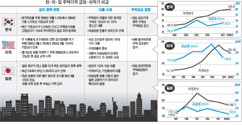 Áý°ª Ç϶ô¿¡ ÀÌ¾î ±ÝÀ¶ À§±â°¡ ¹ß»ýÇÑ ¹Ì±¹ °æÁ¦°¡ ÀϺ»½Ä Àå±â ºÒȲ ¸ðµ¨ÀÇ ÀüöÀ» ±×´ë·Î ¹âÀ» °¡´É¼ºÀÌ ³ô´Ù´Â ºÐ¼®ÀÌ ³ª¿À°í ÀÖ´Ù. °æ±â ºÎ¾çÀ» À§ÇÑ ÃÊÀú±Ý¸® Á¤Ã¥°ú ±ÝÀ¶±â°üÀÇ ¸ð·² ÇØÀúµå(µµ´öÀû ÇØÀÌ)¿¡ ÀÇÇÑ ºÎ½Ç ´ëÃâ, Áý°ª ±Þ¶ô¿¡ ÀÇÇÑ ±ÝÀ¶ À§±â ¹ß»ýÀº ÀϺ»°ú ¹Ì±¹ÀÌ ´àÀº²ÃÀÌ´Ù. Çѱ¹µµ ÃÖ±Ù °í°¡ ÁÖÅÃÀ» Áß½ÉÀ¸·Î Áý°ªÀÌ ±Þ¶ôÇϰí ÀÖ¾î ÀϺ»½Ä ¹öºí ºØ±«¿¡ ´ëÇÑ °æ°¢½ÉÀÌ ³ô¾ÆÁö°í ÀÖ´Ù. ÇÑ¡¤¹Ì¡¤ÀÏÀÇ ÁÖÅà °¡°Ý ±Þµî°ú Ç϶ôÀÇ ¸ÞÄ¿´ÏÁòÀ» ºñ±³ÇØ º»´Ù.