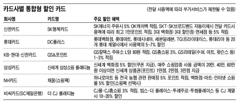 "ÁÖÀ¯¼Ò, ¹éÈÁ¡, ´ëÇü¸¶Æ®, À½½ÄÁ¡¿¡ ¿µÈ°ü±îÁö ¸ðµÎ ´Ù ÇÒÀεǴ ½Å¿ëÄ«µå´Â ¾øÀ»±î?"Ä«µå»çµéÀÌ ÃÖ±Ù Ãâ½ÃÇÑ 'ÅëÇÕÇü ÇÒÀÎÄ«µå'°¡ Å« Àα⸦ ²ø°í ÀÖ´Ù. ÅëÇÕÇü ÇÒÀÎÄ«µå´Â Ä«µå»ç°¡ ´ëÇü À¯Åë¸Á µî°ú Á¦ÈÞÇØ ¸¶Æ®¡¤Åë½Å¡¤ÁÖÀ¯¡¤ÀÎÅÍ³Ý ¼îÇθô µîÀ¸·Î ÇÒÀÎ ¾÷Á¾À» È®ÀåÇÑ °ÍÀÌ Æ¯Â¡. ƯÁ¤ ºê·£µåÀÇ °è¿»ç¿¡¼ ÁýÁßÀûÀ¸·Î »ç¿ëÇÑ´Ù´Â Á¶°ÇÇÏ¿¡¼ ³ôÀº ºñÀ²·Î Æ÷ÀÎÆ®¸¦ Àû¸³ÇØ Áְųª ÇÒÀÎÇØ ÁØ´Ù.