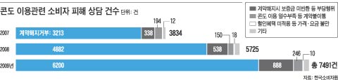 ÁÖ¸»À̳ª °øÈÞÀÏ, °Ü¿ï ½ºÅ°Ã¶À̳ª ¿©¸§ ÈÞ°¡Ã¶ µî ¼º¼ö±â¿£ Äܵµ ȸ¿ø±ÇÀ» °¡Áö°í À־ °´½ÇÀ» ¿¹¾àÇϱⰡ 'ÇÏ´ÃÀÇ º° µû±â'¸¸ÅÀ̳ª ¾î·Æ´Ù. 24ÀÏ Çѱ¹¼ÒºñÀÚ¿ø¿¡ µû¸£¸é Äܵµ ȸ¿ø±Ç°ú °ü·ÃÇØ ¼ÒºñÀÚ¿ø¿¡ Á¢¼öµÇ´Â ÇÇÇØ »ó´ã °Ç¼ö´Â ÃÖ±Ù 3³â »õ ²ÙÁØÈ÷ Áõ°¡Çϰí ÀÖ´Ù. 2007³â 3834°ÇÀ̾ú´ø ÇÇÇØ »ó´ã °Ç¼ö´Â 2008³â 5725°ÇÀ¸·Î 50% °¡±îÀÌ Áõ°¡Çß°í, Áö³ÇØ¿£ 7491°ÇÀÌ Á¢¼öµÆ´Ù.