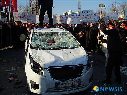 Áýȸ¿¡ Âü¼®ÇÑ ÇÑ ±Ù·ÎÀÚ´Â "GMÀÇ ÇÏû°øÀå À½¸ð´Â ÀÎõ¿¡ ´ëÇÑ ¹è½ÅÀ̸ç GMÀº ÀÎõ½Ã¹Î ¹× »ê¾÷ÀºÇàÀÇ ¿ä±¸¸¦ ¼ö¿ëÇÒ Àǻ簡 ¾ø´Â°¡ ¹¯°í ½Í´Ù"¸ç "GMÀÇ °è¾àÇØÁö¿¡ ¹Ý¹ßÇØ õ¸·³ó¼ºµµ °èȹÇϰí ÀÖ´Ù"°í ¸»Çß´Ù.