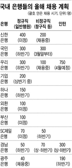 ÀºÇàµéÀº »ó¡¤ÇϹݱâ Áß ÀÎÅÏ »ç¿ø ä¿ë¿¡µµ ³ª¼³ ¿¹Á¤ÀÌ´Ù. ±Ô¸ð´Â ¿ì¸®ÀºÇà 750¸í, °æ³²ÀºÇà 300¸í, ±¤ÁÖÀºÇà 190¸í µîÀÌ´Ù.