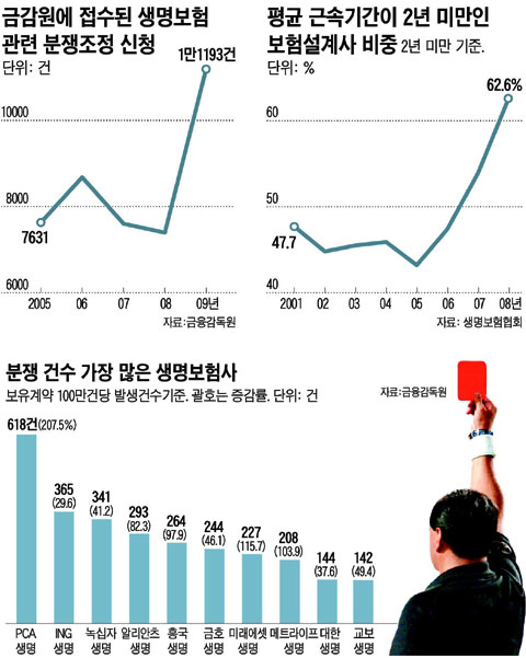 ÁÖ¸ñÇÒ Á¡Àº ¿Ü±¹°è »ýº¸»çÀÇ ¹Î¿øÀÌ Å©°Ô ´Ã¾ú´Ù´Â Á¡ÀÌ´Ù. ±âÁ¸ °è¾àÀ» ÇØÁöÇÏ´Â ºñÀ²µµ ¿Ü±¹°è¿¡¼ µÎµå·¯Á³´Ù. Áö³ 2000³â´ë ÃÊ ¼±Áø ±ÝÀ¶±â¹ýÀ» ¼±ÀüÇÏ¸é¼ ±¹³» »ý¸íº¸Çè ½ÃÀåÀ» ¼®±ÇÇÒ µíÇÑ ±â¼¼¿´´ø ¿Ü±¹°è »ý¸íº¸Çè»çµé¿¡ ¹®Á¦°¡ »ý±ä °ÍÀÌ´Ù.