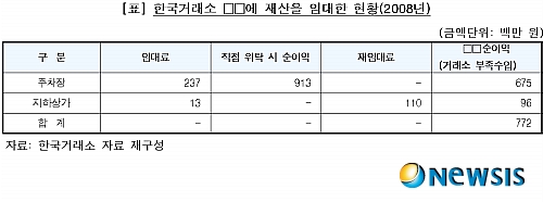 °Å·¡¼Ò´Â ¼öÀǰè¾àÀ» ÅëÇØ ÁöÇÏ 2Ãþ°ú ÁöÇÏ 3Ãþ ÁÖÂ÷Àå °è 1¸¸1114§³(ÁÖÂ÷ ¸é¼ö 300¸é)¸¦ ½ÅÇù¿¡°Ô ÀÓ´ëÇÏ´Â °úÁ¤¿¡¼ 2001³â 8¿ù 27ÀÏ °è¾àÇÑ ÀÓ´ë·á(°ü¸®ºñ Æ÷ÇÔ) ¿¬ 2¾ï3700¸¸ ¿ø(ÁÖÂ÷ 1¸é´ç ¿ù 6¸¸6000¿ø¡¿300¸é¡¿12°³¿ù)À» °¨»ç¿ø °¨»ç ½ÃÁ¡ÀÎ Áö³ÇØ 11¿ù 23ÀϱîÁö ±×´ë·Î Àû¿ëÇß´Ù. ÀÌ´Â ÁÖº¯ ÁÖÂ÷Àå ÀÓ´ë·á, °Å·¡¼Ò °Ç¹° ÀÓ´ë·á Àλó·ü, ÁÖÂ÷Àå ¿î¿µ ¼öÀÔ µîÀ» °¨¾ÈÇÏÁö ¾ÊÀº °ÍÀÌ´Ù.