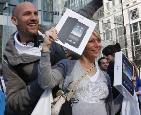 - ¡ã 3ÀÏ ¿ÀÀü ¹Ì±¹ ´º¿åÀÇ ¾ÖÇà ½ºÅä¾î ¾Õ¿¡¼ ÇÑ Ä¿ÇÃÀÌ »õ·Î ±¸ÀÔÇÑ ¾ÖÇûçÀÇ ÅÂºí¸´ PC ¾ÆÀÌÆÐµå¸¦ µé¾î º¸À̸ç Ȱ¦ ¿ô°í ÀÖ´Ù. À̳¯ºÎÅÍ ¹Ì Àü¿ª¿¡¼ ¾ÆÀÌÆÐµå ÆÇ¸Å°¡ ½ÃÀ۵ƴÙ. ¾ÖÇà °øµ¿Ã¢¾÷ÀÚÀÎ ½ºÆ¼ºê ¿öÁî´Ï¾Çµµ ´Ù¸¥ ¾ÖÇà ÆÒµé°ú ÇÔ²² ¹ã»õ ÁÙÀ» ¼¼ ±¸ÀÔÀ» Çß°í, ½ºÆ¼ºê À⽺ ¾ÖÇà CEO´Â ½Ç¸®Äܹ븮 ¸ÅÀå¿¡ Á÷Á¢ ³ªÅ¸³µ´Ù. ¿Ü½ÅµéÀº ¾ÆÀÌÆÐµåÀÇ ¿ÃÇØ ¿¹»ó ÆÇ¸Å·®À» 300¸¸~700¸¸´ë·Î ¿¹ÃøÇϰí ÀÖ´Ù. / ·ÎÀÌÅÍ ¿¬ÇÕ´º½º