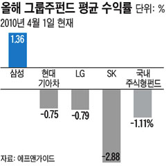 ´ä´äÇÑ °Ô°ÉÀ½ Àå¼¼¿¡¼± ÁÖ½ÄÇüÆÝµåÀÇ ¼öÀÍ·üµµ ºÎÁøÇÒ ¼ö¹Û¿¡ ¾ø´Ù. ÇÏÁö¸¸ ¾÷Á¾ ´ëÇ¥ÁÖ·Î ÅëÇÏ´Â »ï¼º±×·ìÁÖ¿¡ ÅõÀÚÇÏ´Â ÆÝµåµéÀº ÀÌ °°Àº Àå¼¼¿¡¼µµ µÎ°¢À» º¸À̰í ÀÖ´Ù.4ÀÏ ±ÝÀ¶Á¤º¸¾÷ü ¿¡ÇÁ¾Ø°¡À̵忡 µû¸£¸é Áö³ 1ÀÏ ±âÁØÀ¸·Î »ï¼º±×·ìÁÖÆÝµå Æò±Õ ¼öÀÍ·üÀº ¿¬ÃÊ ÀÌÈÄ 1.36%¸¦ ±â·ÏÇØ ±¹³» ÁÖ½ÄÇüÆÝµå Æò±Õ¼öÀÍ·ü ¸¶À̳ʽº 1.11%º¸´Ù ÁÁÀº ¼ºÀûÀ» º¸À̰í ÀÖ´Ù. 1³â ¼öÀÍ·üµµ 51.19%¸¦ ±â·ÏÇØ ¾ÈÁ¤ÀûÀÌ´Ù. ´Ù¸¥ ±×·ìÁÖÆÝµå¿¡ ºñÇØ¼µµ ¾çÈ£ÇÑ ¼öÀÍ·üÀ» ±â·ÏÇϰí ÀÖ´Ù. Çö´ë¡¤±â¾ÆÂ÷±×·ìÁÖÆÝµåÀÇ °æ¿ì °°Àº ±â°£ ¸¶À̳ʽº 0.75%ÀÇ ¼öÀÍ·üÀ» ±â·ÏÇϰí ÀÖÀ¸¸ç, LG±×·ì°ú SK±×·ìÁÖÆÝµåµéµµ °¢°¢ ¸¶À̳ʽº 0.79%, ¸¶À̳ʽº 2.88%ÀÇ ÀúÁ¶ÇÑ ¼ºÀûÀ» º¸À̰í ÀÖ´Ù.