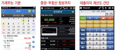 'ezÆ÷ÄÏ °¡°èºÎ'´Â 2006³â PDA(°³ÀÎÈÞ´ëÁ¤º¸´Ü¸»±â)¿ëÀ¸·Î Ãâ½ÃµÈ µÚ Çѱ¹ »ç¿ëÀÚµéÀÌ ²ÙÁØÈ÷ »ç¿ëÇϰí ÀÖ´Â Á¦Ç°À¸·Î ÃÖ±Ù¿¡´Â ¾ÆÀÌÆù¿ëµµ µîÀåÇß´Ù. ¾ÆÀÌÆù¿¡¼ ÀÔ·ÂÇÑ ÀÚ·á´Â PC·Î, PC¿¡¼ ÀÔ·ÂÇÑ ÀÚ·á´Â ¾ÆÀÌÆùÀ¸·Î ¿Å±æ ¼ö ÀÖ´Ù. û±¸ ¿¬¿ù, Ä«µåÁ¾·ùº° ½Å¿ëÄ«µå ³»¿ªÀÚ·á µî ÀÔ·ÂµÈ ÀڷḦ ±âÃÊ·Î ´Ù¾çÇÑ Á¶°ÇÀÇ Á¶È¸¿Í °è»êµµ °¡´ÉÇÏ´Ù.