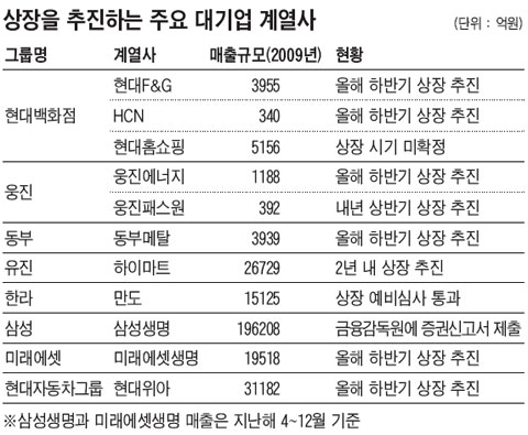 ´ë±â¾÷ °è¿»çµéÀÇ 'Áõ½Ã »óÀå(ß¾íÞ)' ·¯½Ã°¡ ¿¹»óµÈ´Ù.±¹³» Áõ½Ã°¡ Á¶±Ý¾¿ Ç®¸®¸é¼ Àμö¡¤ÇÕº´(M&A)À» À§ÇÑ ÀÚ±Ý(½Çź) ¸¶·Ã µîÀ» À§ÇØ ¾ËÂ¥ °è¿»çÀÇ ±â¾÷°ø°³(IPO)¸¦ ÃßÁøÇÏ´Â ±â¾÷ÀÌ Å©°Ô ´Ã°í ÀÖ´Ù. 14ÀÏ Áõ±Ç¾÷°è¿Í Àç°è¿¡ µû¸£¸é ¿Ã µé¾î Çö´ë¹éÈÁ¡±×·ì¡¤µ¿ºÎ±×·ì¡¤¿õÁø±×·ì¡¤Çö´ëÀÚµ¿Â÷±×·ì¡¤ÇѶó±×·ì¡¤À¯Áø±×·ì µîÀÇ ´ë±â¾÷µéÀÌ ºñ»óÀå °è¿»çÀÇ »óÀåÀ» Àû±Ø ÃßÁøÇϰí ÀÖ´Ù.