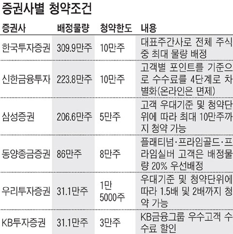 Çѱ¹ÅõÀÚÁõ±ÇÀº ¿ì¼ö °í°´°ú ÀÏ¹Ý °í°´¿¡ ´ëÇÑ °ø¸ðÁÖ ¹èÁ¤¿¡ ´ëÇØ Â÷º°À» µÎÁö ¾Ê°í û¾àÀ» ¹Þ´Â´Ù. ÇÏÁö¸¸ ÀϺΠÁõ±Ç»ç¿¡¼´Â ¿ì¼ö °í°´ÀÇ °æ¿ì ÀÏ¹Ý Ã»¾àÀÚº¸´Ù ¹èÁ¤ ¹°·®À» ¿ì¼± ¹èÁ¤ÇØÁØ´Ù. »ï¼ºÁõ±Ç°ú ¿ì¸®ÅõÀÚÁõ±ÇÀº ¿ì¼ö °í°´¿¡°Ô °³Àκ° û¾àÇѵµ¸¦ ÃÖ´ë 2¹è±îÁö ´Ã·ÁÁØ´Ù°í ¹àÇû´Ù.