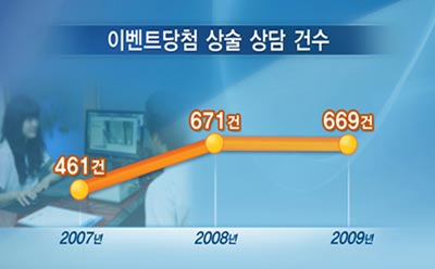À̺¥Æ®´ç÷ °ü·Ã ¼ÒºñÀÚ»ó´ãÀº ²ÙÁØÈ÷ Áõ°¡Çϰí ÀÖ´Â Ãß¼¼ÀÌ´Ù. Çѱ¹¼ÒºñÀÚ¿ø¿¡ µû¸£¸é À̺¥Æ®´ç÷ »ó¼ú »ó´ãÀº 2007³â 461°Ç, 2008³â 671°Ç, 2009³â 669°ÇÀ¸·Î Áö¼ÓÀûÀ¸·Î ´Ã¾î³µ´Ù. Çѱ¹¼ÒºñÀÚ¿øÀº ¡°ÃÖ±Ù¿£ ¹«·á ¿©Çà±ÇÀ» ¹Ì³¢·Î ¼ÒºñÀÚ¸¦ À¯ÀÎÇÑ ÈÄ °æÇ° ´ç÷¿¡ µû¸¥ Á¦¼¼°ø°ú±Ý°ú Ãß°¡ ºñ¿ë µîÀ» ¿ä±¸ÇÏ´Â »ó¼úÀÌ Å©°Ô Áõ°¡Çß´Ù¡±°í ¹àÇû´Ù.