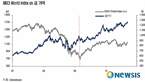 ±Ý°ª°ú ÁÖ°¡ÀÇ µ¿¹Ý »ó½ÂÀº ÀÌ·ÊÀûÀÌ´Ù. ÀϹÝÀûÀ¸·Î ¾ÈÀüÀÚ»êÀÎ ±Ý°ú À§ÇèÀÚ»êÀÎ ÁÖ½ÄÀº '¿ªÀÇ »ó°ü°ü°è'¸¦ °®´Â´Ù. ±×·¯³ª ÃÖ±Ù ±Ý½ÃÀå°ú ÁֽĽÃÀåÀº 'Á¤ÀÇ »ó°ü°ü°è'¸¦ ³ªÅ¸³»°í ÀÖ´Ù.