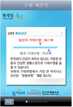 ¼ö¸í°è»ê±âÀÇ Ç׸ñÀº Åë°èû ±¹°¡Åë°èÆ÷ÅÐÀÇ ±¹³» ¼ö¸íÀڷḦ ±âÁØÀ¸·Î Á¦°øµÇ¾úÀ¸¸ç, Åë°èû »ý¸íÇ¥´Â ³ªÀÌ, ¼ºº°, Áö¿ª¿¡ µû¸¥ Åë°èÄ¡ ¹Ý¿µÀ̸ç, Àý´ëÀûÀ¸·Î ¼ö¸í¿¡ ¿µÇâÀ» ¹ÌÄ¡´Â ¿ä¼Ò´Â ¾Æ´Ï´Ù. ÀÌ ¾ÛÀº ¾ÆÀÌÅ÷Áî¿Ü¿¡ ¾Èµå·ÎÀÌµå ¸¶ÄÏ¿¡¼µµ ¹«·á·Î ´Ù¿î·Îµå ¹ÞÀ» ¼ö ÀÖ´Ù.