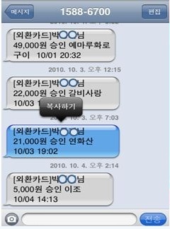 Ä«µå»ç³ª ÀºÇà µî¿¡¼ ÀÌ¿ë(°áÁ¦) ³»¿ª ¹®ÀÚ°¡ µµÂøÇßÀ» ¶§, ¹®ÀÚȸ鿡¼ ¹®ÀÚ¸¦ ´©¸£°í, ȸ鿡 "º¹»çÇϱâ" ¹öưÀÌ ³ªÅ¸³ª¸é "º¹»çÇϱâ" ¹öưÀ» ¼±ÅÃÇÑ´Ù. ÀÌÈÄ ¡®ÆíÇÑ °¡°èºÎ PRO¡¯¸¦ ½ÇÇàÇÏ¿©, ÀÌ ¾ÛÀÇ °¡°èºÎ ¸Þ´º¿¡¼ "ºÙ¿©³Ö±â" ¹öưÀ» ¼±ÅÃÇϸé, ÀÚµ¿À¸·Î ÁöÃâ³»¿ªÀÌ »ý¼ºµÈ´Ù. (¹®ÀÚ º¹»ç´Â ¹®ÀÚȸ鿡¼ ¹®ÀÚ¸¦ ´©¸£¸é, ȸ鿡 'º¹»çÇϱâ' ¹öưÀÌ »ý±â¸ç, 'º¹»çÇϱâ' ¹öưÀ» ¼±ÅÃÇÏ¸é µÈ´Ù.)