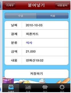 ¼öÀÔ°ú ÁöÃâÀ» ÇÑ ´«¿¡ ¾Ë ¼ö ÀÖ´Ù. ¿ù°£ ¼öÀÔ°ú ÁöÃâÀÇ ÃѾ×À» ÇÔ²² º¼ ¼ö ÀÖ°í, °¢ Ç׸ñÀÇ ¼öÁ¤ÀÌ °¡´ÉÇÏ´Ù. ±¹³» 146°³ÀÇ ÀºÇà, Ä«µå»ç, Áõ±Ç»çº° CMA¿¡¼ Àü¼ÛµÈ ¹®ÀÚ³»¿ªÀ» °¡°èºÎ¿¡ Á¤¸® ÇÒ ¼ö ÀÖ´Ù. ¼öÀÔ°ú ÁöÃâ³»¿ªÀ» °ü¸®ÇÏ´Â °¡°èºÎ, Àڻ꺯µ¿, ¿ù°£ ¼öÀÔ ¹× ÁöÃâ¿¡ ´ëÇÑ Åë°èµµ Á¦°øÇÑ´Ù. ´Ü, ¹®ÀÚ·Î Àü¼ÛµÇÁö ¾ÊÀº ¼öÀÔ ¹× ÁöÃâ ³»¿ªÀº »ç¿ëÀÚ°¡ Á÷Á¢ ÀÔ·ÂÇØ¾ß ÇÑ´Ù.