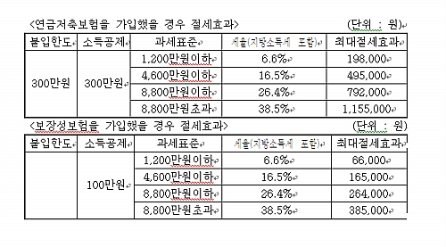 °ú¼¼Ç¥ÁØ 1200¸¸¿ø Ãʰú 4600¸¸¿ø ÀÌÇÏÀÇ ÀϹÝÀûÀÎ Á÷ÀåÀÎÀ̶ó¸é º¸À强º¸Çè·á 100¸¸¿ø ³³ÀԽà 16¸¸¿ø Á¤µµ¸¦ µ¹·Á¹ÞÀ» ¼ö ÀÖ´Ù. 8800¸¸¿ø Ãʰú ¼ÒµæÀÚ´Â 38¸¸¿ø Á¤µµ Àý¼¼È¿°ú°¡ ÀÖ´Ù.