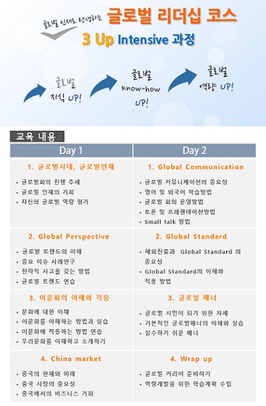 ±Û·Î¹ú ½Ã´ë¿¡ ´ëºñÇØ¼ ¿ì¸® ³ª¶óÀÇ ÀÎÀçµéÀ» ±Û·Î¹ú ÀÎÀç·Î ¾ç¼ºÇϱâ À§ÇØ ¼³¸³µÈ ±â°üÀÌ ÀÖ´Ù. °í¿ë³ëµ¿ºÎ »êÇÏÀÇ ºñ¿µ¸® »ç´Ü¹ýÀÎ ±Û·Î¹úÀÎÀç°æ¿µ¿øÀÌ ±× °÷ÀÌ´Ù. ±Û·Î¹úÀÎÀç°æ¿µ¿øÀº ¿À´Â 7¿ù 8ÀÏ, 9ÀÏ ÀÌÆ²°£ ´ëÇлý°ú ÀþÀº Á÷ÀåÀÎÀ» ´ë»óÀ¸·Î ±Û·Î¹ú ¿ª·® ÁýÁß°úÁ¤À» ¿î¿µÇÑ´Ù.