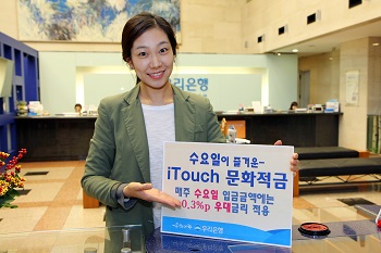 ¡®¼ö¿äÀÏÀÌ Áñ°Å¿î-iTouch ¹®ÈÀû±Ý¡¯Àº ¿ù 300¸¸¿ø ¹üÀ§ ³»¿¡¼ ÀÚÀ¯·Ó°Ô Àû¸³ÇÒ ¼ö ÀÖ´Â 1³âÁ¦ ÀÚÀ¯Àû±Ý »óǰÀ¸·Î, ¸ÅÁÖ ¼ö¿äÀÏ ÀԱݱݾ׿¡ ´ëÇØ¼´Â ±âº»±Ý¸® ¿¬ 2.1% ¿Ü¿¡ Ãß°¡·Î ¿¬ 0.3%p ¿ì´ë±Ý¸®¸¦ Á¦°øÇÑ´Ù. ¶ÇÇÑ Àü±¹ 25°³ Ææ¼Ç ¹«·á 1¹Ú±Ç ¹× ¿öÅÍÆÄÅ©¡¤Ä·ÇÎÀå, ÇØ¿Ü¿©Çà µî ·¹Àú½Ã¼³ ÀÌ¿ë ÇÒÀμºñ½º ¹× ¹®È»óǰ±Ç ±¸ÀÔÇÒÀÎ, Ä«¼Î¾î¸µ ¹«»óÁ¦°ø µî ´Ù¾çÇÑ ºÎ´ë¼ºñ½º¸¦ Á¦°øÇϰí, ¸¸±âÇØÁö ½Ã¿¡´Â ±¸µÎ ÇÒÀÎÄíÆùµµ Á¦°øÇÑ´Ù.