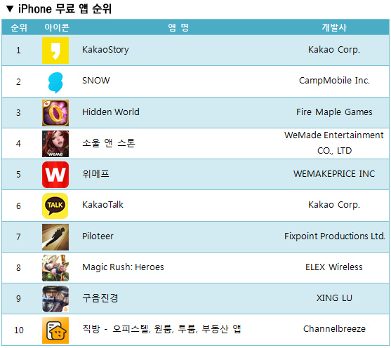 App Store 주간 인기 앱 차트 2016년 1월 2주차