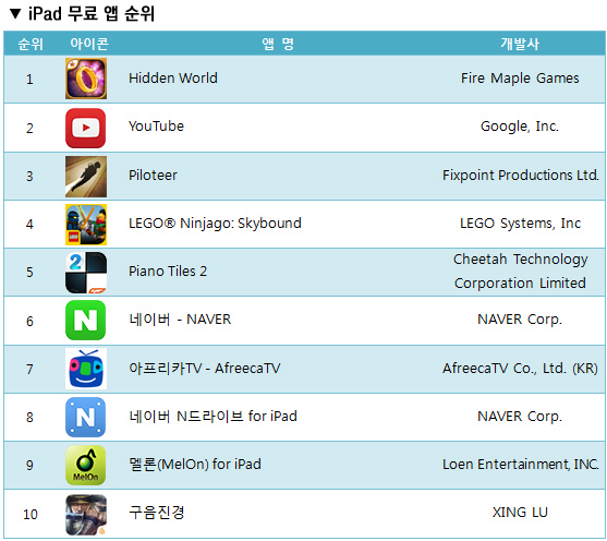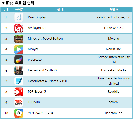 App Store 주간 인기 앱 차트 2016년 1월 4주차