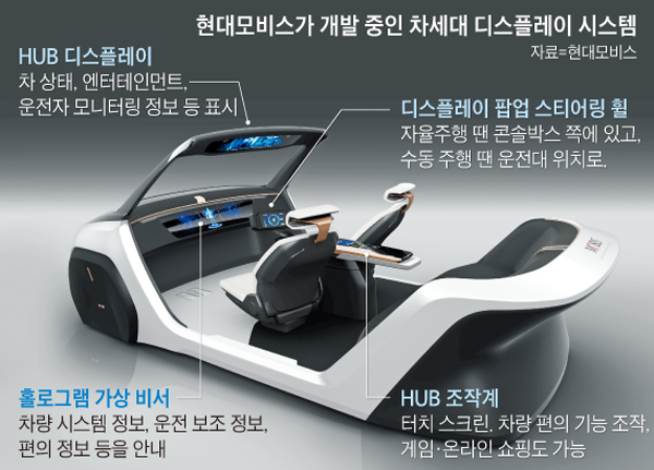 결국 현대모비스는 자동차 부품 회사에서 궁극적으로 ICT(정보통신기술) 기업으로 발돋움하겠다는 포부다. 양승욱 현대모비스 ICT연구소장(부사장)은 "글로벌 자동차 부품사와 IT 업체들이 각자 차별화된 전략으로 자율주행차용 차세대 콕핏 개발 경쟁을 펼치고 있다"며 "미래형 디스플레이 기술에 통신·편의·보안 기술을 접목한 다양한 커넥티비티 솔루션 개발에 박차를 가하고 미래차 기술을 선도하는 ICT 기업으로 도약할 것"이라고 말했다.