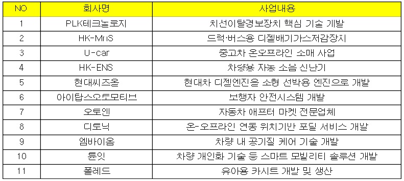 지금까지 'PLK 테크놀로지'와 '현대씨즈올' 등이 분사했으며, 이번 3개 기업을 포함하면 현대ᆞ기아차가 육성해 독립시킨 사내스타트업은 총 11개사로 늘어났다.