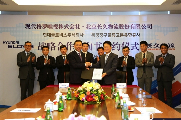 현대글로비스는 지난 28일 중국 베이징 창지우그룹 본사에서 김정훈 현대글로비스 대표이사(사장)와 보스지우 창지우그룹 회장 등 양사 관계자 20여명이 참석한 가운데 업무협약(MOU)을 맺었다고 29일 밝혔다.