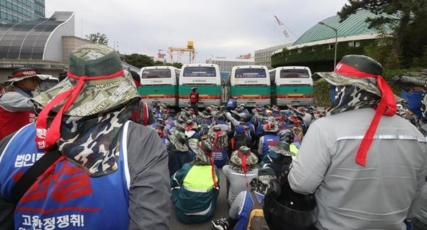 현대중공업 노조는 "실사단이 공권력을 이용해 진입을 시도하면 즉각 총파업하고 거제로 달려가겠다"고 밝혔다.