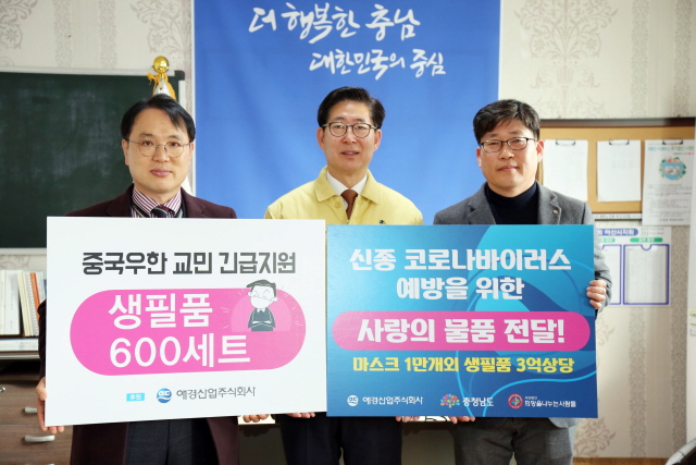 먼저 애경산업은 충청남도 도민들의 개인위생 관리에 도움을 주기 위해 3억원 상당의 생활용품을, 우한 교민들에게는 600개의 생활용품 세트를 지원한다.