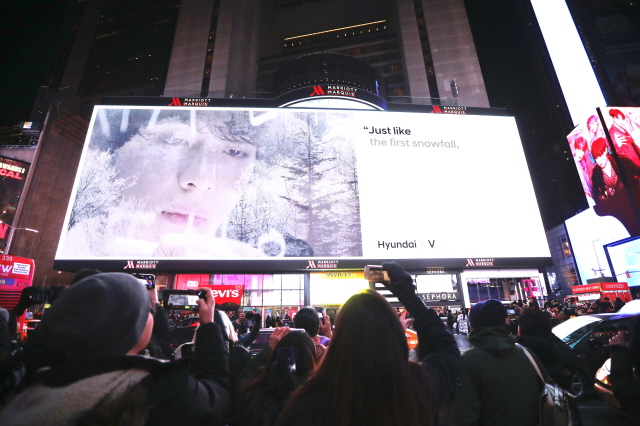 현대자동차가 21일(현지시각) 미국 뉴욕 타임스퀘어에서 방탄소년단이 출연한 ‘글로벌 수소 캠페인’ 영상을 최초로 공개했다.