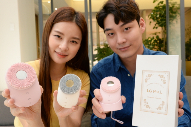 LG전자가 새롭게 선보이는 '블라썸 핑크' 색상 LG 프라엘 초음파 클렌저(BCN1)를 6일 국내 출시했다.