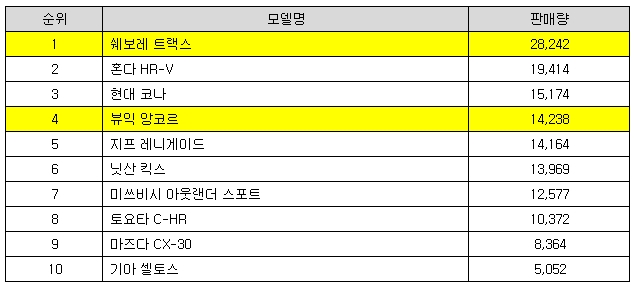 트랙스와 앙코르는 국내 수출 통계상 모두 트랙스로 통합해 집계되는 형제 모델로, 미국 소형SUV 세그먼트를 리드하는 대표 모델로 자리잡고 있다. 트랙스와 앙코르의 1분기 미국시장 판매량은 전체 소형 SUV 세그먼트 판매량의 30%에 육박하며, 지난해에는 총 22만9218대가 판매되며 연간 소형SUV 판매 1위에 오르기도 했다.