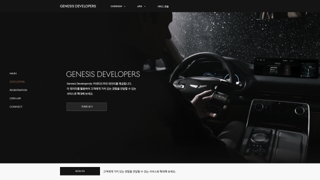 커넥티드카 서비스 및 상품을 개발하고자 하는 사업자는 제네시스 디벨로퍼스 홈페이지에 가입 후 데이터 사용처와 목적을 등록하면 승인을 거쳐 API를 제공 받을 수 있다.