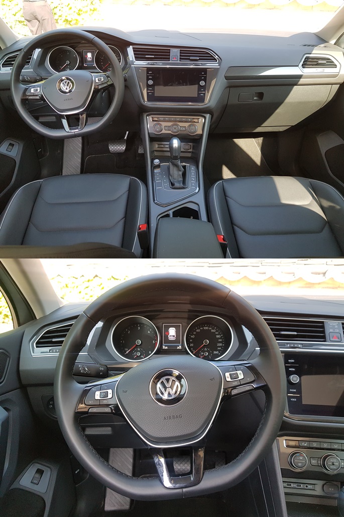 폭스바겐 티구안의 실내 공간은 비교적 체격 대비 넓은 여유와 탁트인 개방감을 준다. 실제 실내 공간을 더욱 넓게 연출하는 대시보드와 깔끔하게 다듬어진 센터페시아 등이 중심을 잡고 있다. 1열 좌석의 경우에는 시트의 표면, 질감 등이 깔끔하면서 편안함을 준다. 시트의 느낌이나 앉았을 때 개방감도 느껴진다. 2열 공간도 충분히 확보했다.