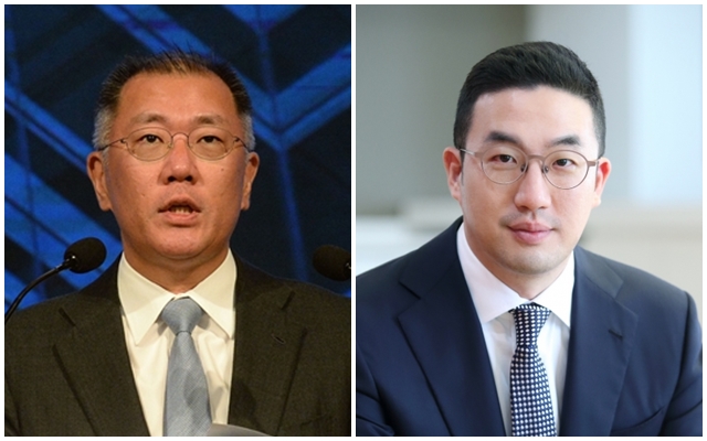 정의선 현대차그룹 수석부회장(왼쪽)과 구광모 LG 대표. /각사 제공