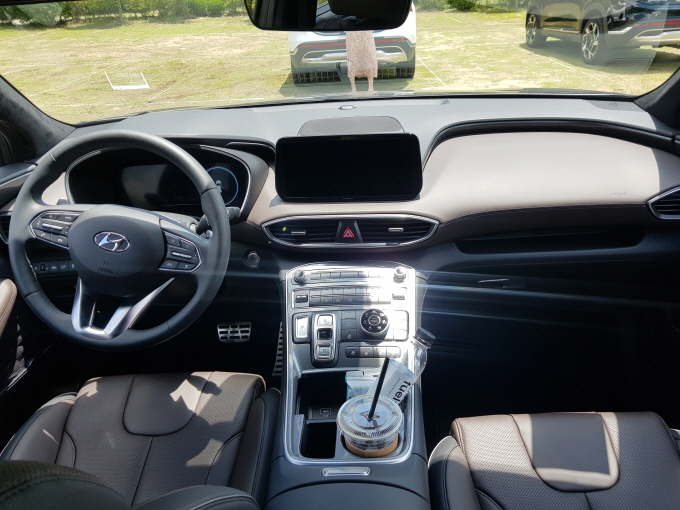 싼타페의 본격적인 주행을 위해 운전대를 잡았다. 시승 코스는 경기 고양 현대모터스튜디오에서 북한산 인근의 한 카페를 왕복하는 65km 거리였다. 시승차량은 디젤 2.2 최상위트림 '캘리그래피' 였다. 차량의 색상은 진회색의 '마그네틱 포스'였다.