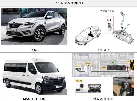 르노삼성차에서 수입·판매한 ‘XM3 TCe260’ 모델 등 2개 차종 1만9993대는 연료펌프 내 부품인 임펠러 손상으로 연료 공급이 원활하지 않아 시동이 꺼질 가능성이 있는 것으로 확인됐다.