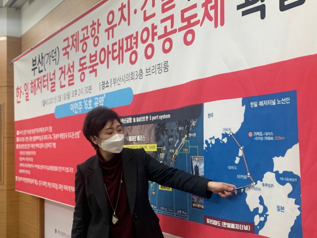 가덕신공항과 한일해저터널 브리핑 모습/이언주