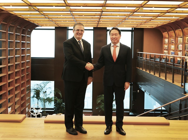최태원 SK그룹 회장이 멕시코 외무장관을 만나 한국과 멕시코간 경제협력에 SK가 적극적인 역할을 맡아 양국 경제발전에 기여할 수 있다는 점을 피력했다.