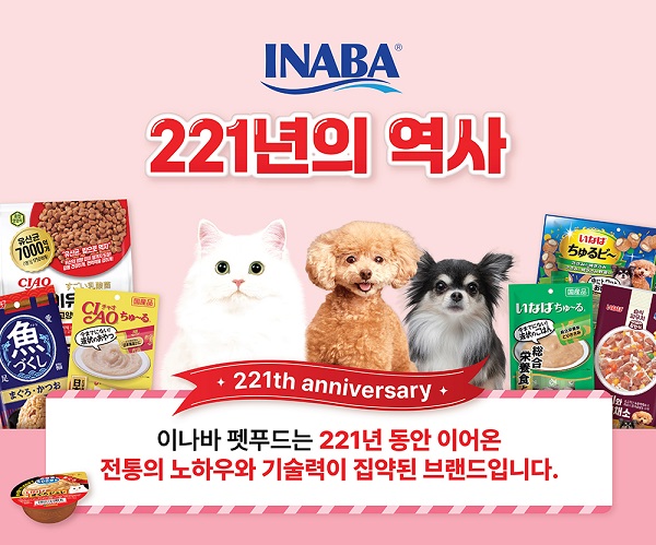 1805년 창립해 올해로 221주년을 맞이한 글로벌 펫푸드 브랜드 이나바는 우수한 품질과 높은 기호성으로 국내 소비자..