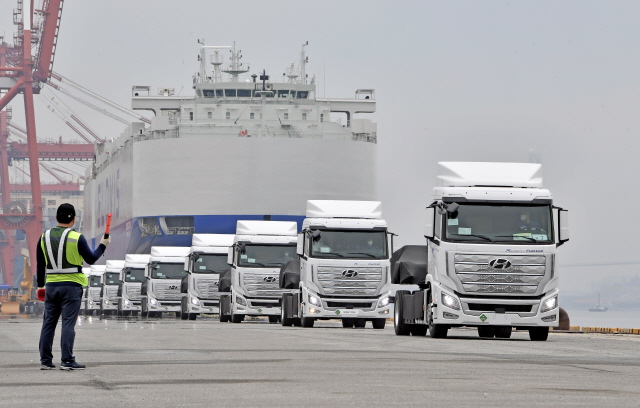 현대차 수소전기 대형트럭 10대 스위로 첫 수출…세계 최초 양산