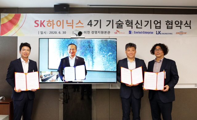 SK하이닉스가 쎄믹스, 엘케이엔지니어링, 에버텍엔터프라이즈를 4기 기술혁신기업으로 선정하고 협약식을 가졌다고 30일 밝혔다. 이들 기술혁신기업은 2년간..