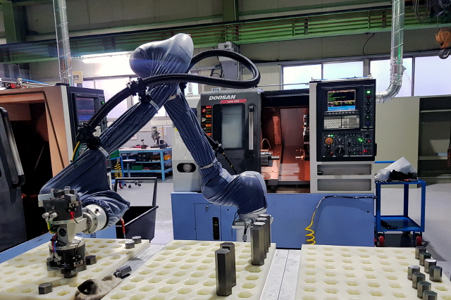 두산은 올해 10개 협력사에 생산관리시스템(MES)을 적용해 생산현장의 디지털 전환을 돕고, 협동로봇 도입을 통해 생산라인 자동화 구축을 지원하기로 했다..