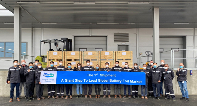 두산솔루스 헝가리 공장, 전지박 초도양산품 출하…4월 이후 양산