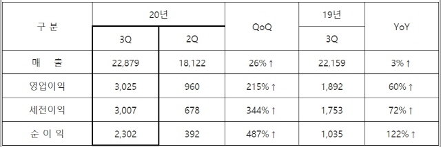 삼성전기, 3분기 영업익 3025억…전분기 대비 215% 증가