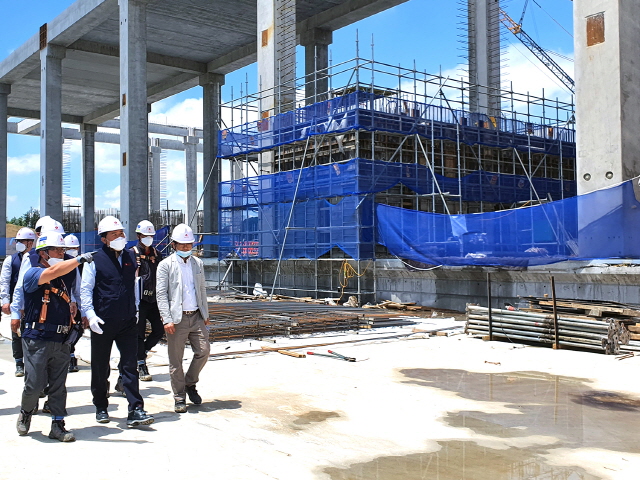 황각규 롯데지주 부회장이 20일 충북 진천의 롯데글로벌로지스 택배 메가 허브 터미널 건립 현장을 방문했다. 황 부회장은 공사 진척 현황에 대한 보고를 받..
