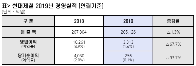 현대제철, 지난해 영업익 3313억…전년비 67.7%↓